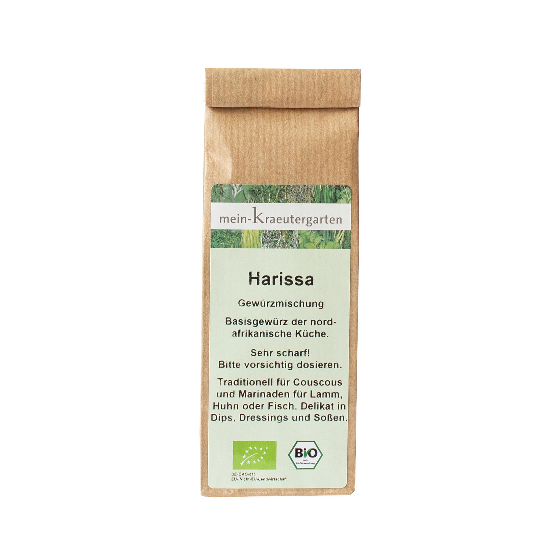 Zutaten: Koriander*, Chili*, Schnittlauch*, Paprika scharf* und süß*, Kreuzkümmel*, Lorbeer*, marokkanische Minze*, Zimt*, Safran*
